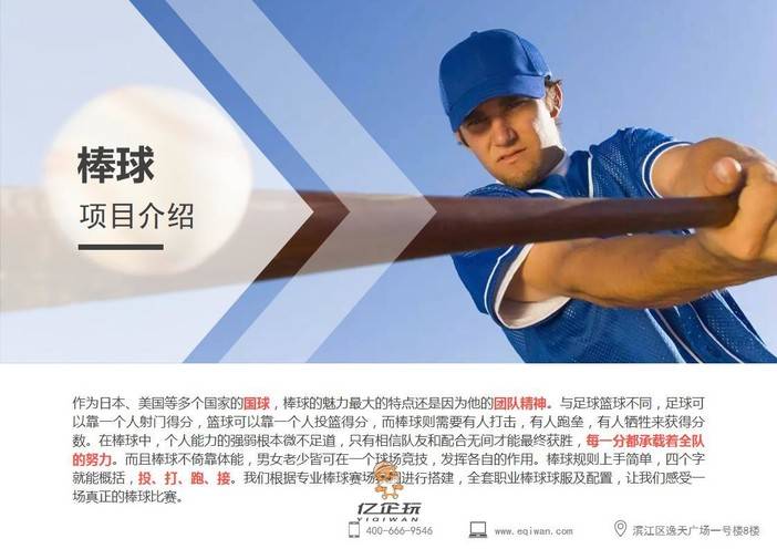 在棒球中,个人能力的强弱根本微不足道,只有相信队友和配合无间才能最终获胜,每一分都承载着全队的努力。而且棒球不倚靠体能,男女老少皆可在一个球场竞技,发挥各自的作用。棒球规则上手简单,四个字就能概括,投、打、跑、接。我们根据专业棒球赛场氛围进行搭建,全套职业棒球球服及配置,让我们感受一场真正的棒球比赛。